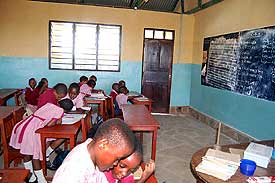 Unsere 2. Klasse ist fleißig am Lernen. Die oberen beiden Klassenräume des neuen Schulgebäudes werden bereits genutzt.
