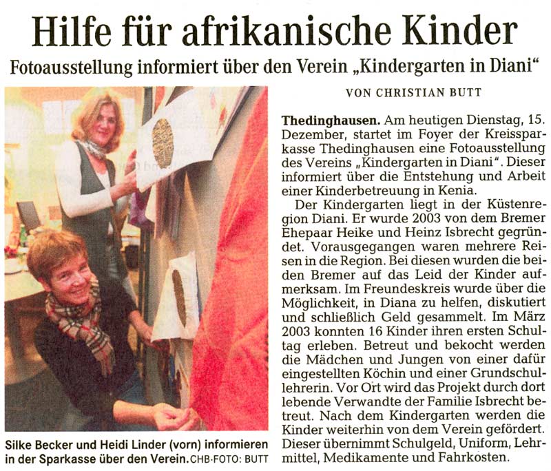 - Achimer Kreisblatt (15.12.2009) "Hilfe für afrikanische Kinder"